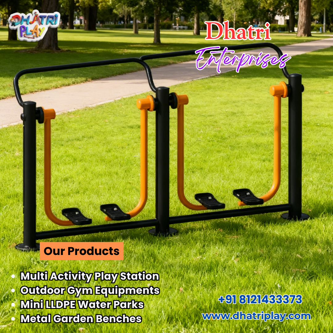 Dhatri Play manufactures a wide range of outdoor fitness equipment designed for parks and open fitness areas. Our equipment helps improve cardiovascular health, muscle strength, flexibility, and body balance.